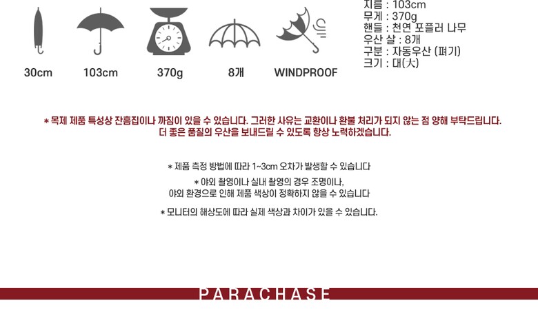 파라체이스 포플러 우드그립 전자동 3단 우산 3234