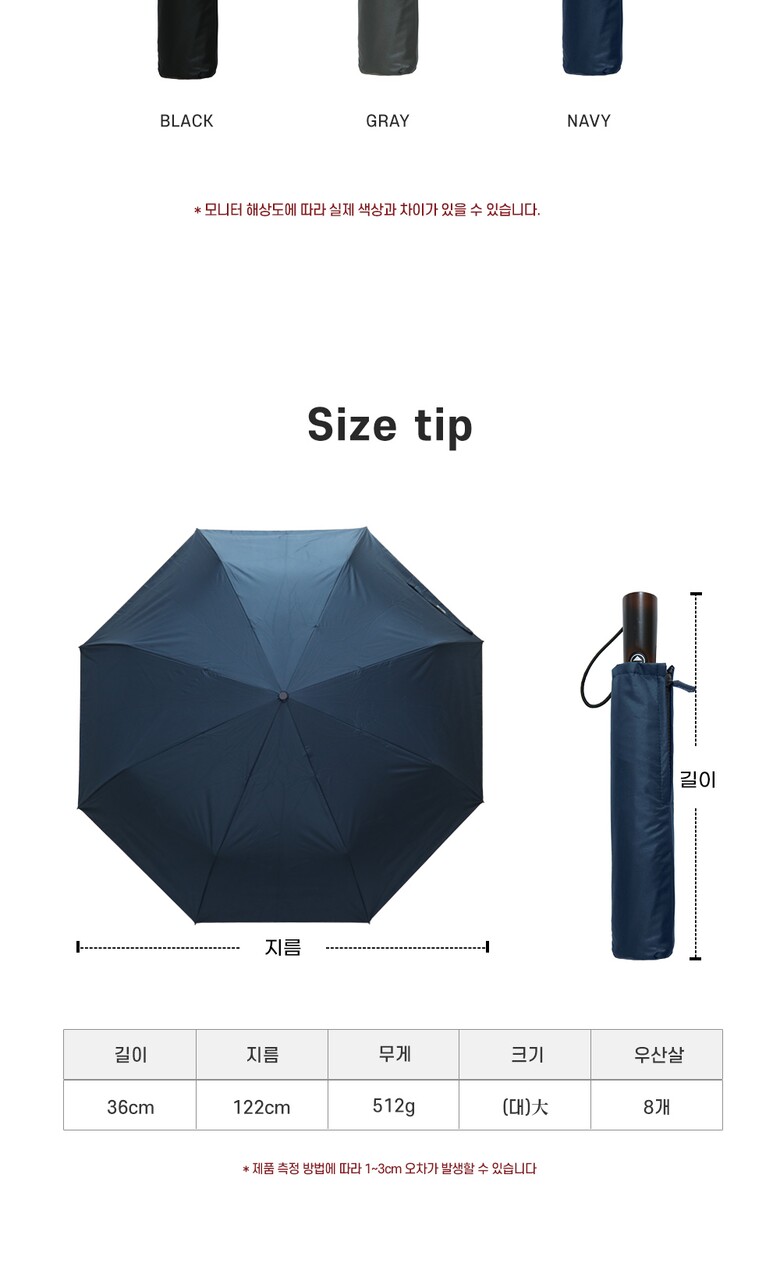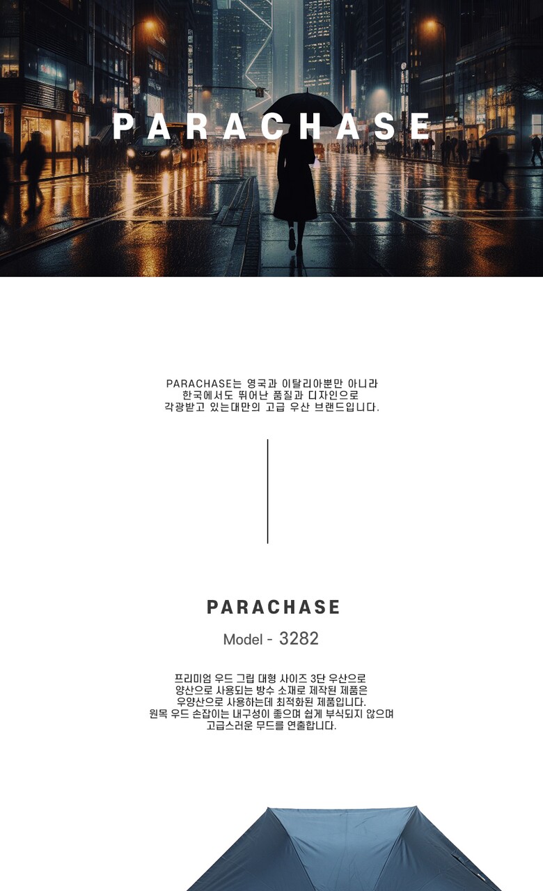 파라체이스 스모키드 우드 일자형 3단 자동우산 3282
