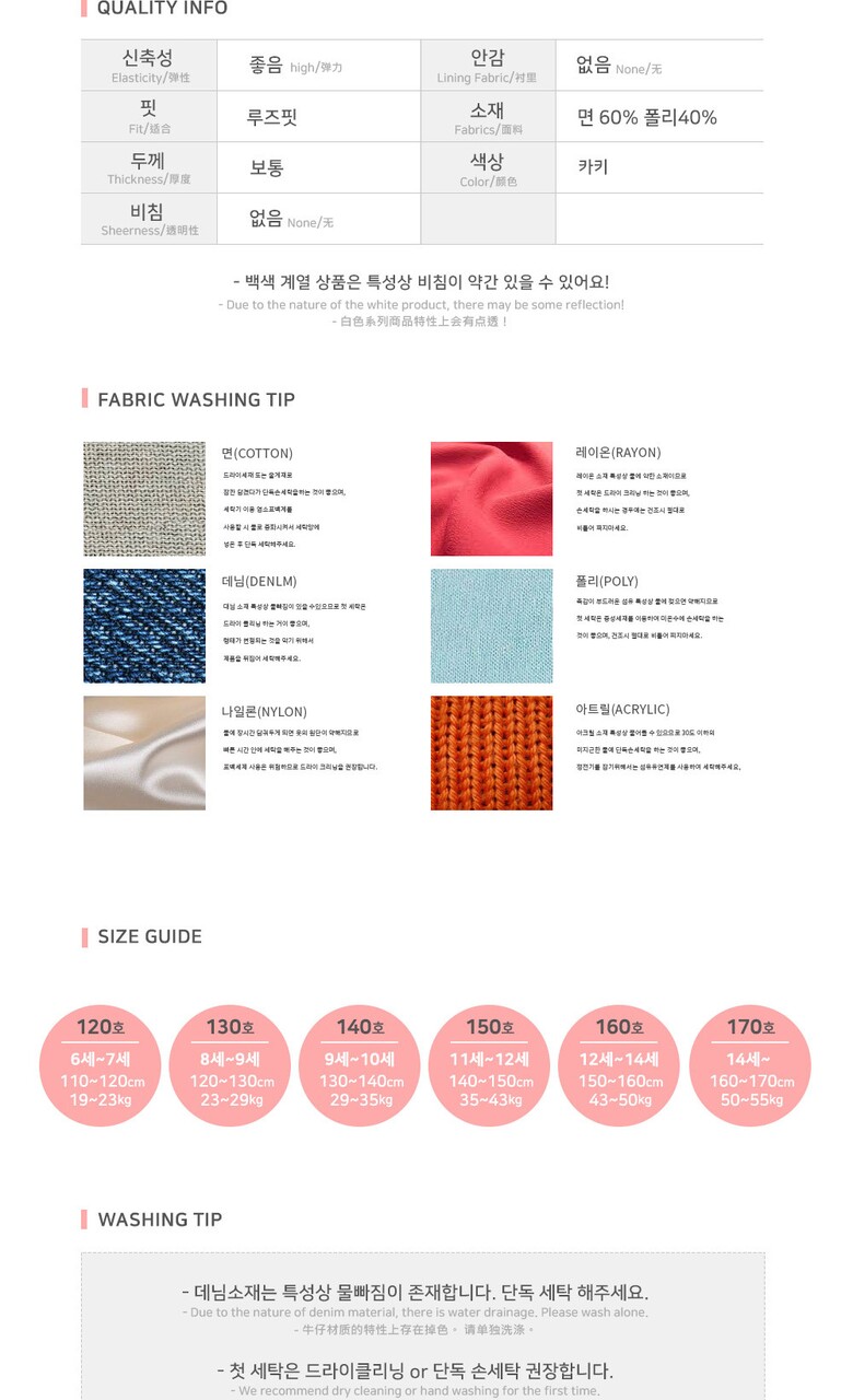 6. 세탁방법 및 취급시 주의사항 | 상세페이지 내 기재 |