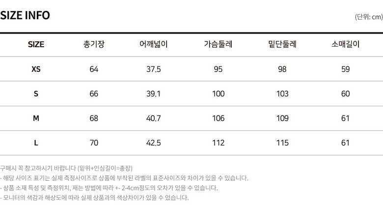 | 6. 세탁방법 및 취급시 주의사항 | 다운제품 특성상 봉제선상에서 미세한 깃털이 나올수 있습니다. |