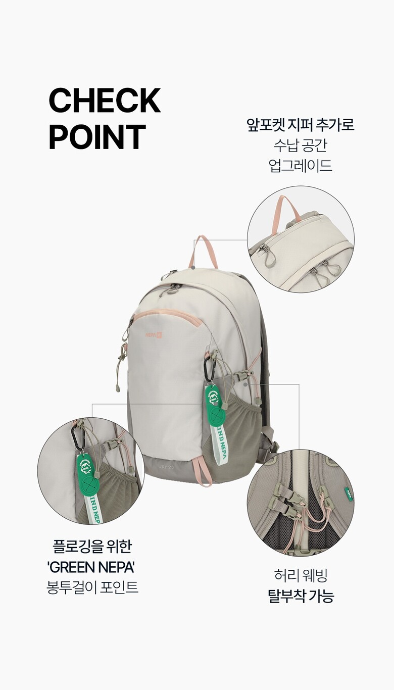 - 앞포켓 지퍼 추가로 수납 공간 업그레이드
