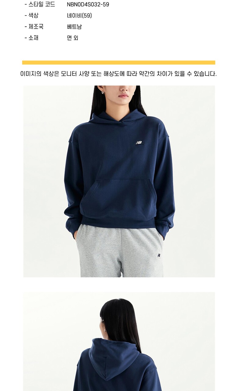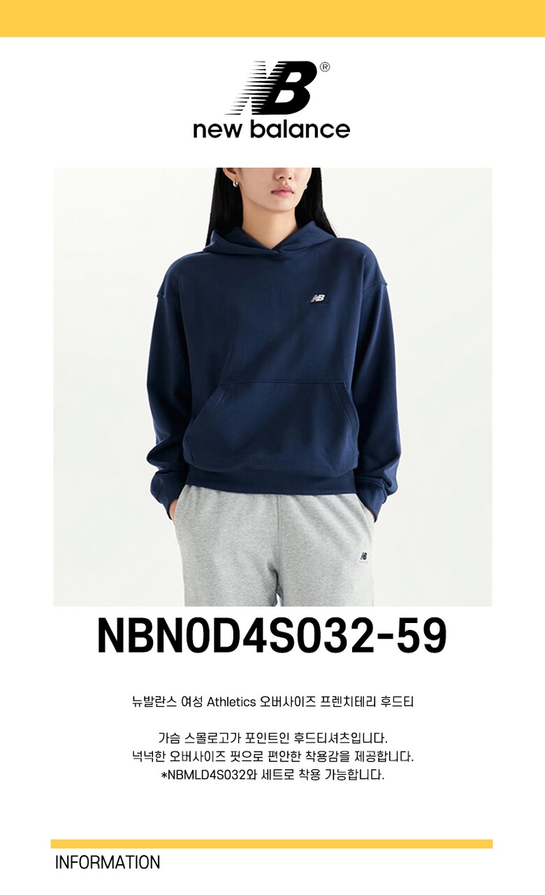 뉴발란스 여성 에슬레틱 오버사이즈 프렌치테리 후드티 NBN0D4S032-59