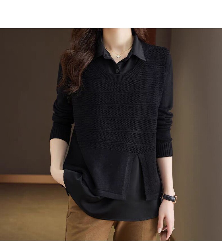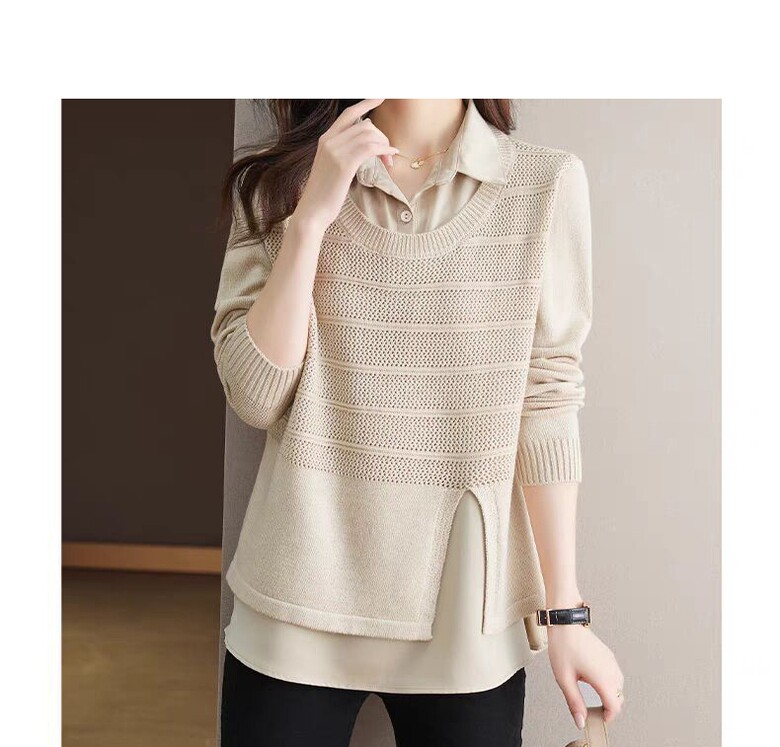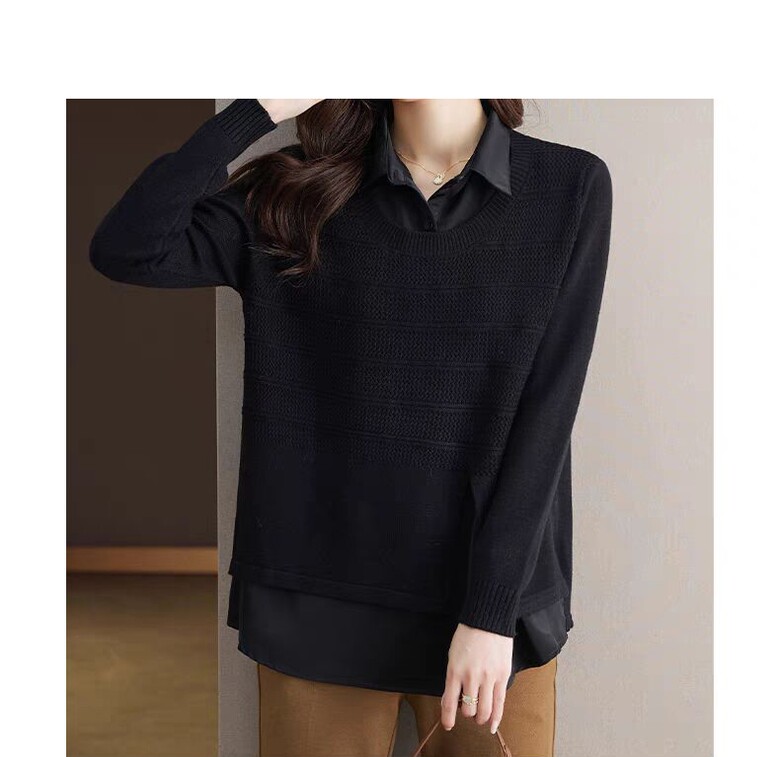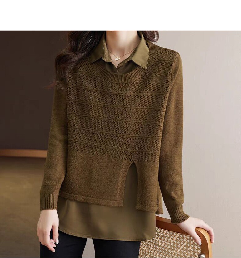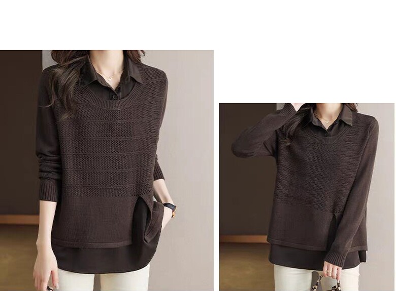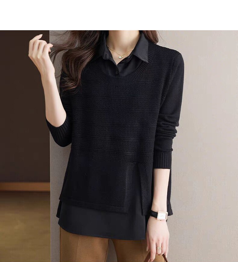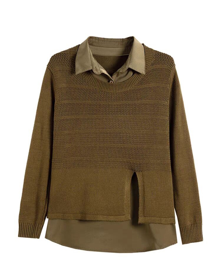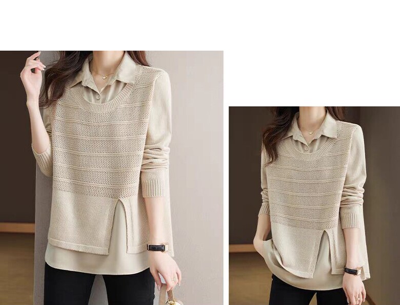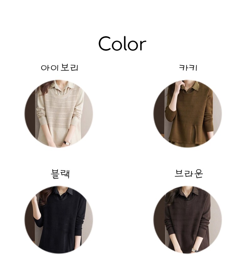 로미 레이어드 셔츠 라운드 절개 니트 셔츠 4color_240819_HY31