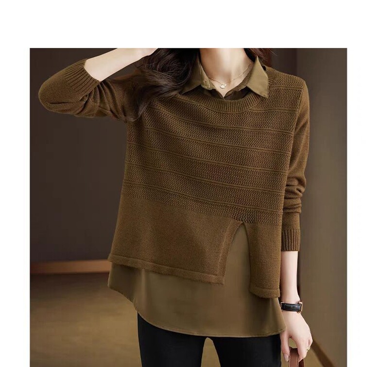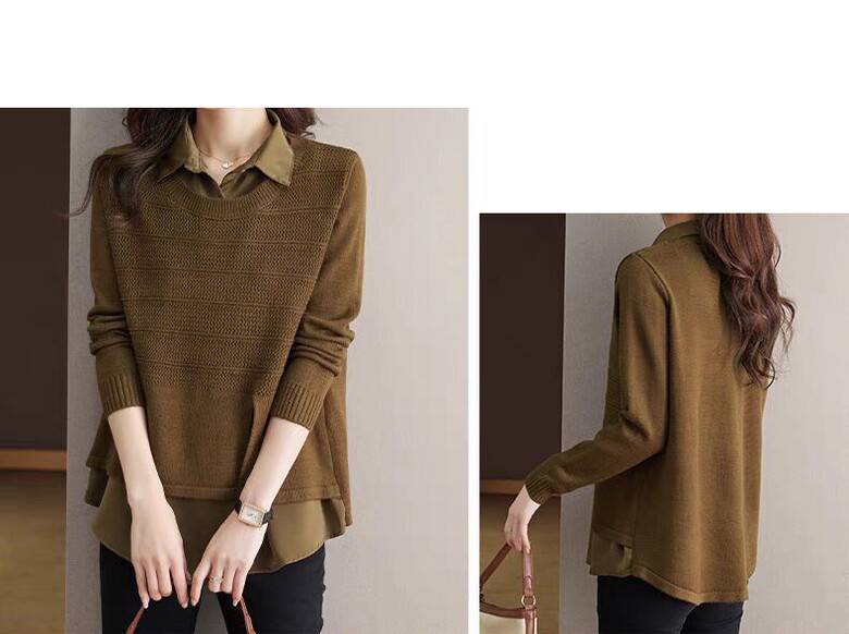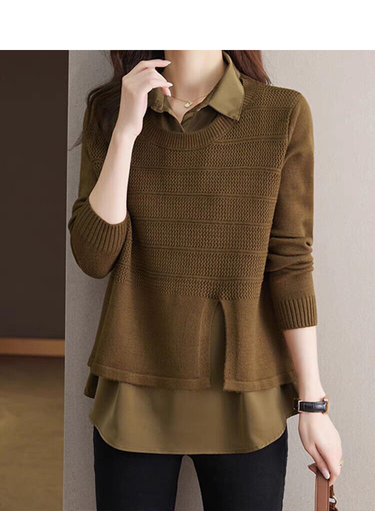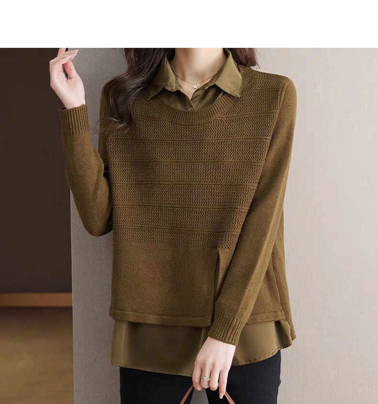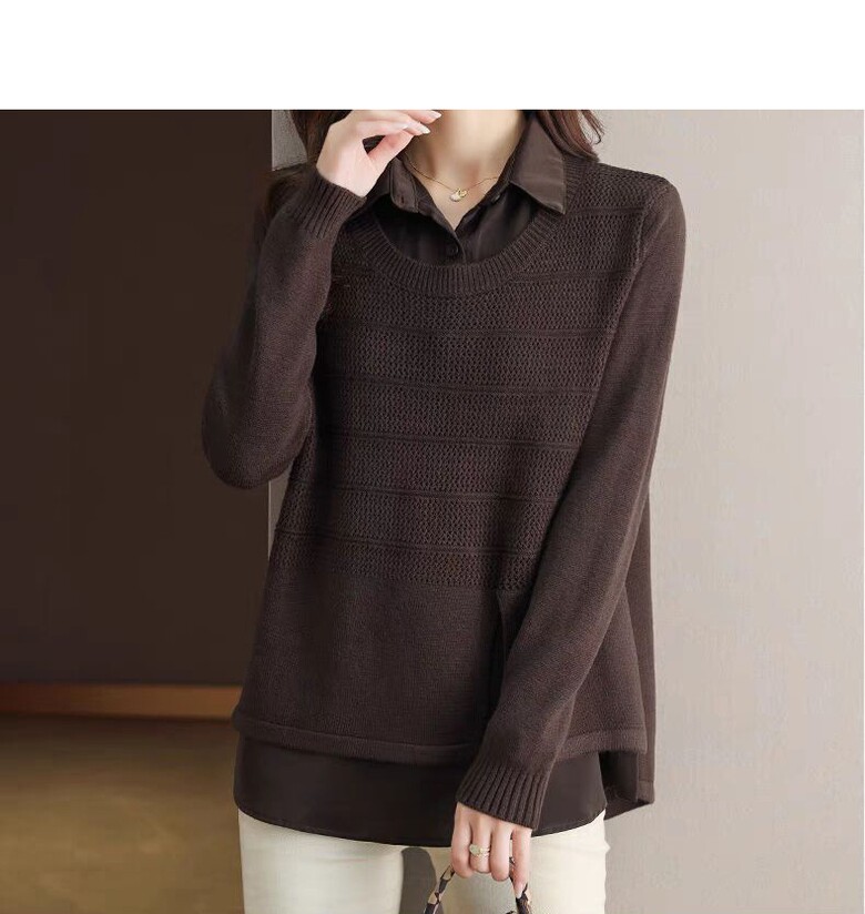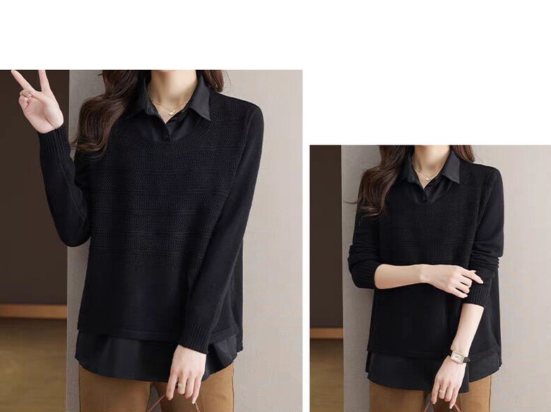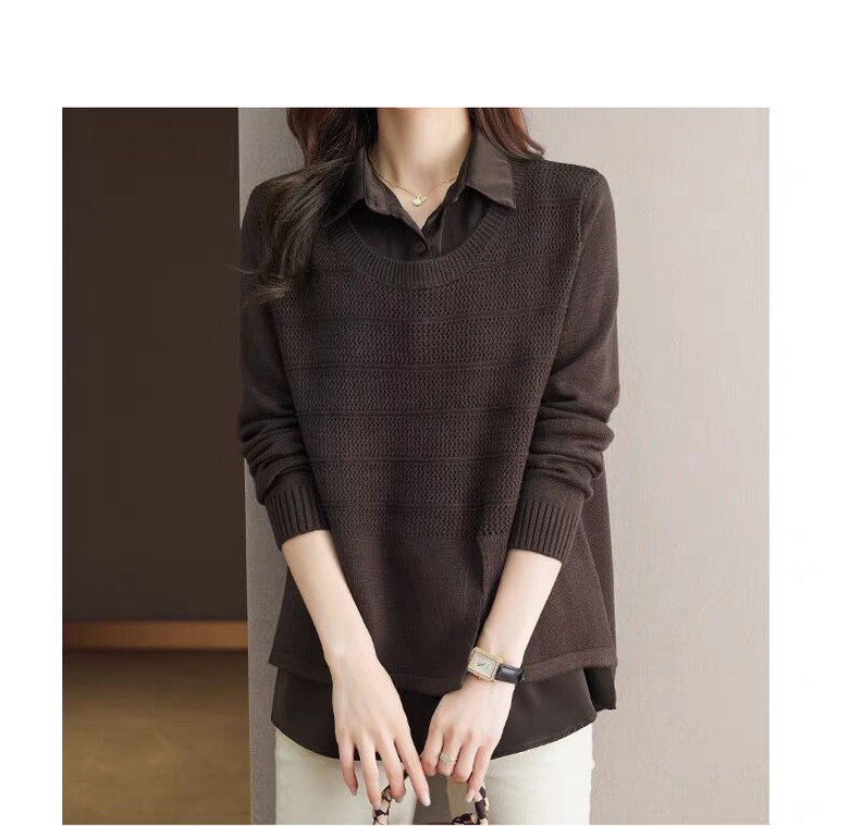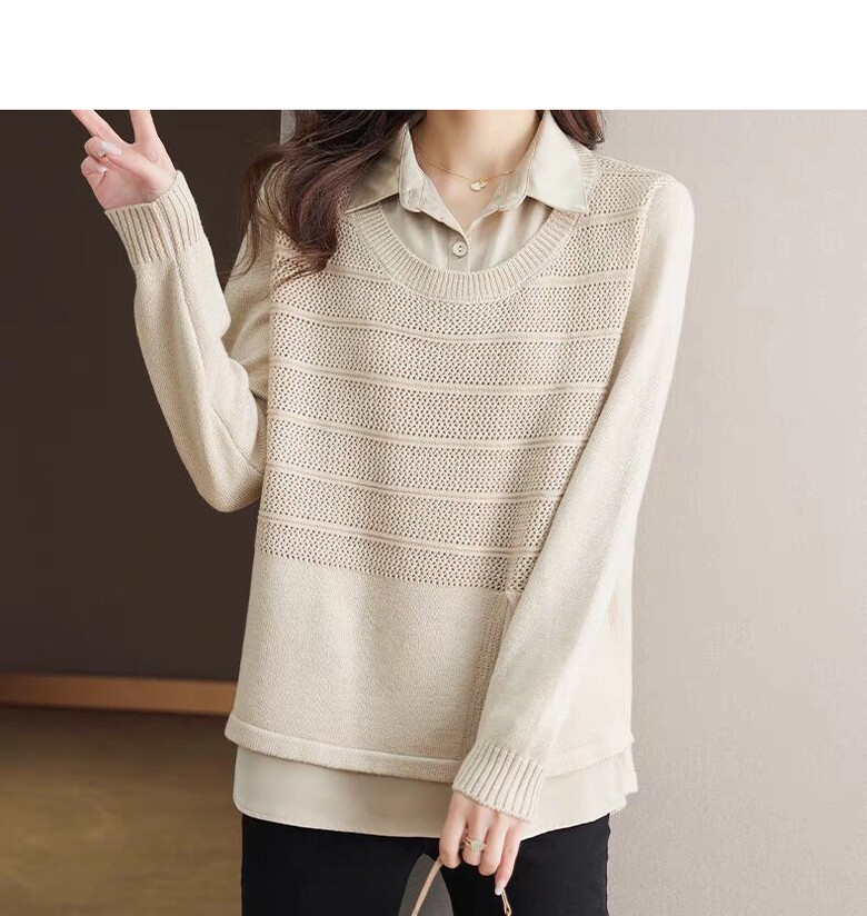 로미 레이어드 셔츠 라운드 절개 니트 셔츠 4color_240819_HY31