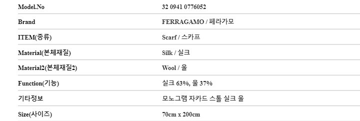 페라가모 32 0941 0776052 모노그램 자카드 스톨 실크 울 여성 스카프