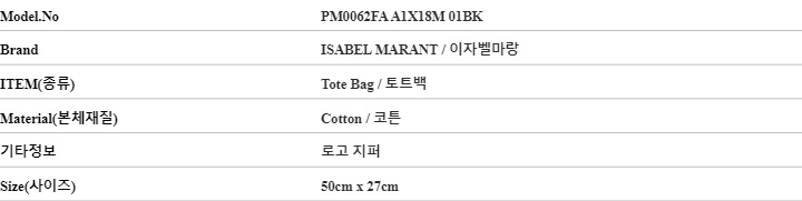 이자벨마랑 PM0062FA A1X18M 01BK YENKY 옌키 로고 지퍼 공용 토트백 가방