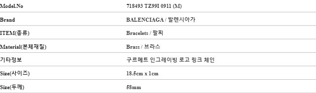 발렌시아가 718493 TZ99I 0911 BB 구르메트 인그레이빙 로고 링크 체인 남성 팔찌