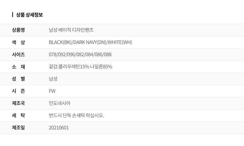 2. 색상 | BLACK(BK)/DARK NAVY(DN)/WHITE(WH) |