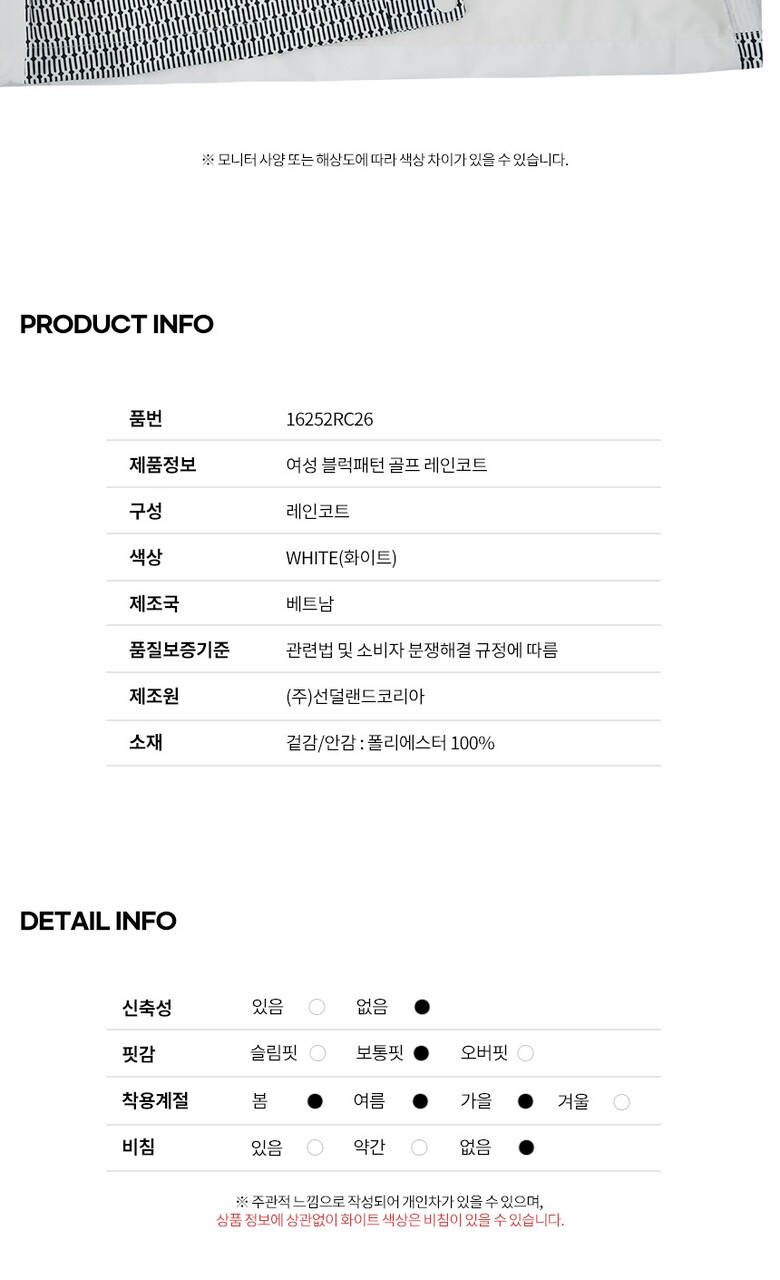 선덜랜드 여성 블럭패턴 골프 레인코트/비옷 - 16252RC26