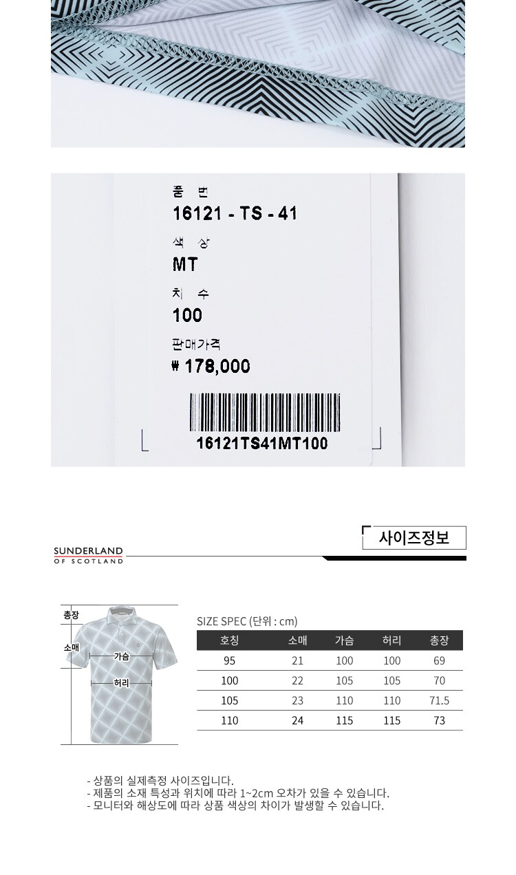 선덜랜드 남성 3D프린트 카라 반팔티셔츠 - 16121TS41
