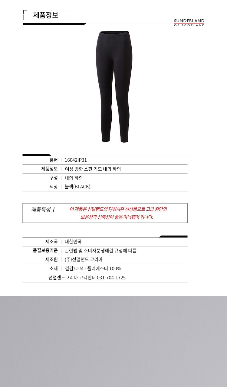 선덜랜드 여성 방한 스판 기모 내의 하의 - 16042IP31