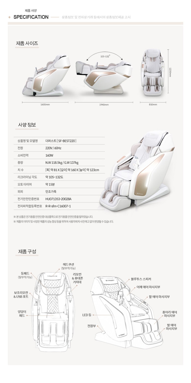 1. 모델명(품번) | 사파헬스케어 더퍼스트 안마의자 SF-BEST220 |