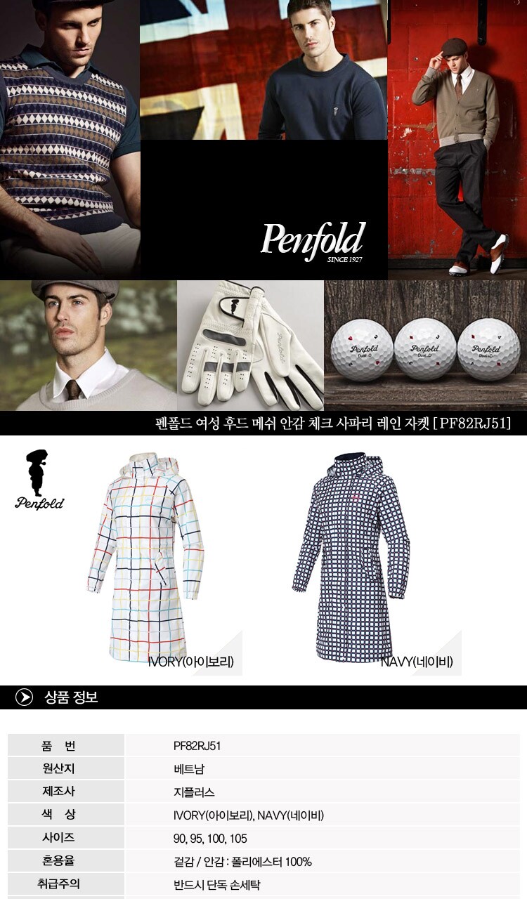 펜폴드 PENFOLD 여성 완벽방수 메쉬 안감 체크포인트 후드 레인코트/사파리비옷 - PF82RJ51