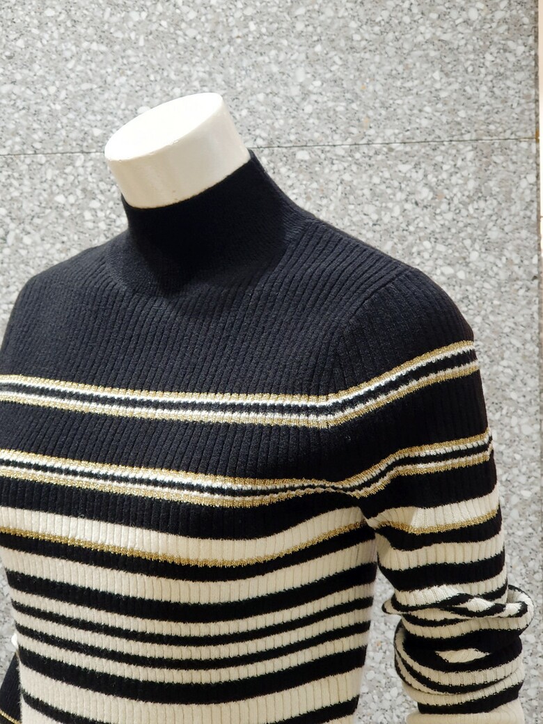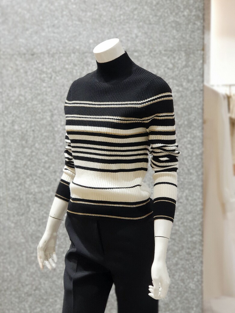 울 모크 넥 글리터 스트라이프 니트 JP9-A1-PO813