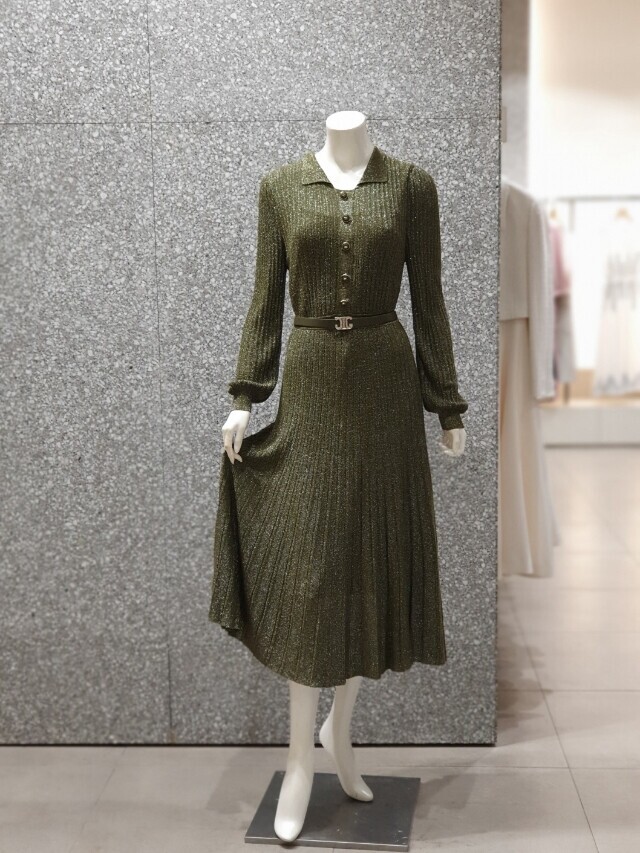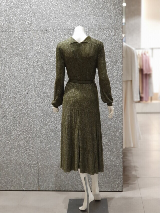 화려한 글리터원단이 포인트를 더해주고 페미닌한 볼륨 슬리브로 입체감 있는 실루엣을 연출해주는 니트원피스입니다.