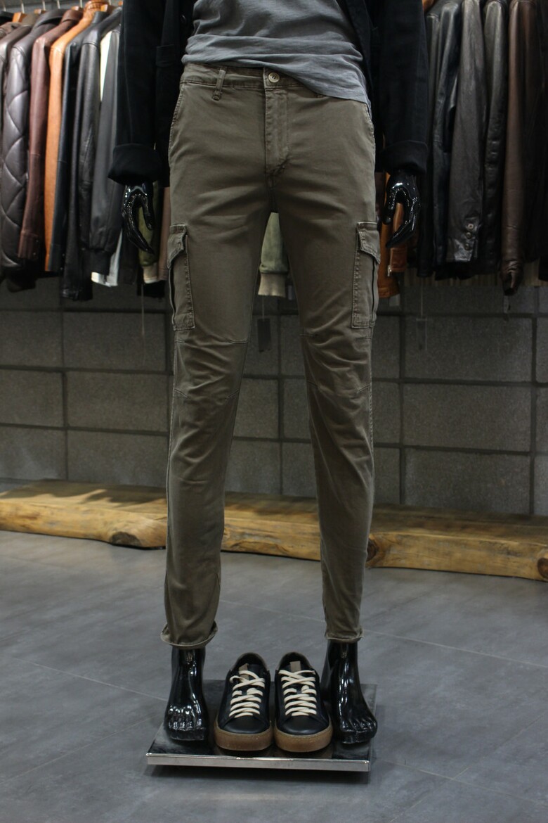 이태리직수입 가먼트다잉빈티지브라운 슬림스판카고바이커팬츠 f-qcpt02br