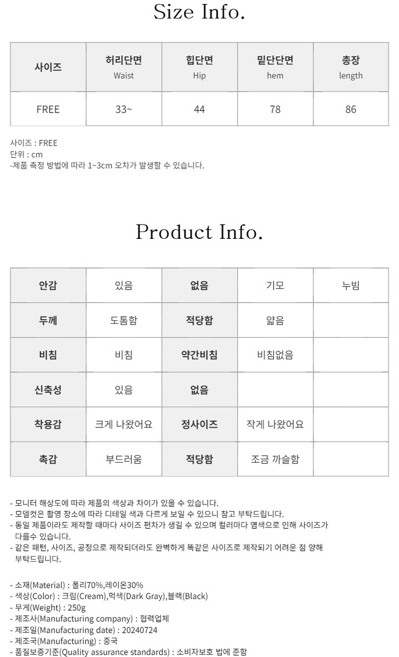 - COLOR(색상) : 크림(Cream),먹색(Dark Gray),블랙(Black)
