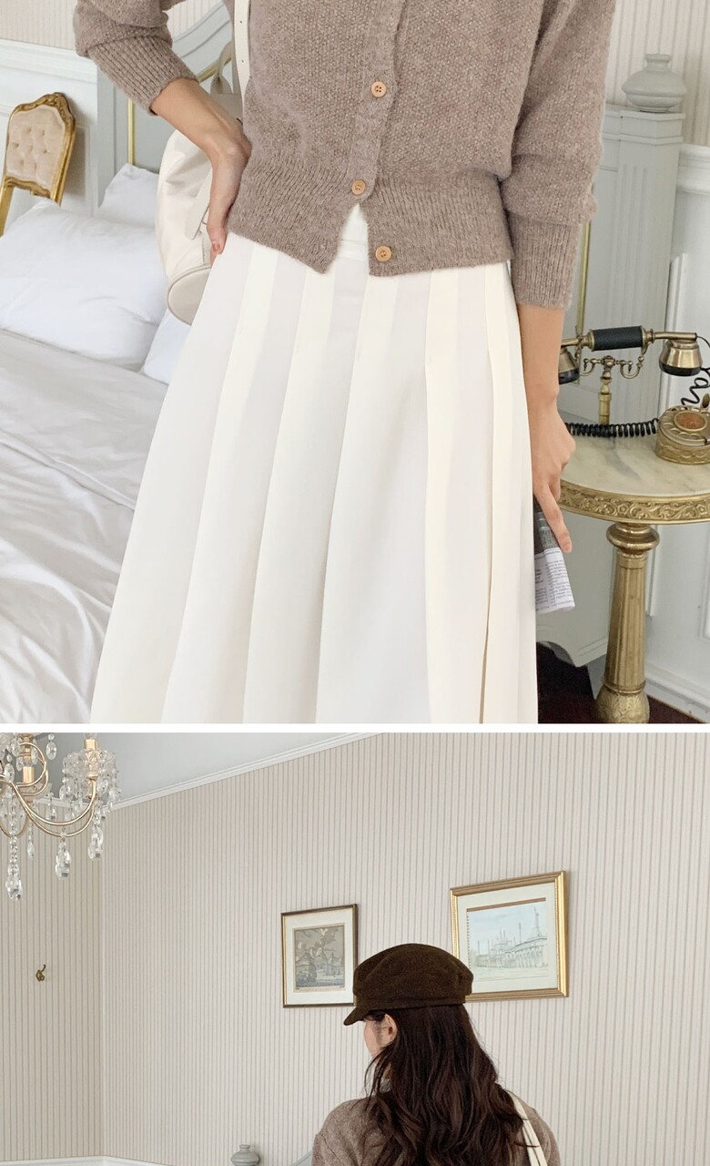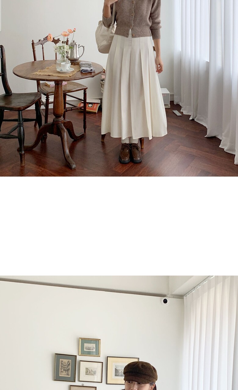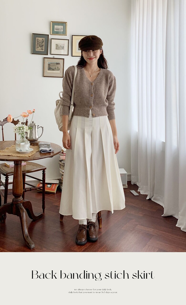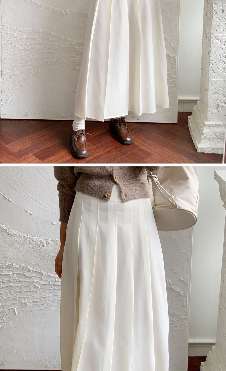 네쥬 여성 가을 편한 뒷밴딩 플리츠 데일리 롱 스커트