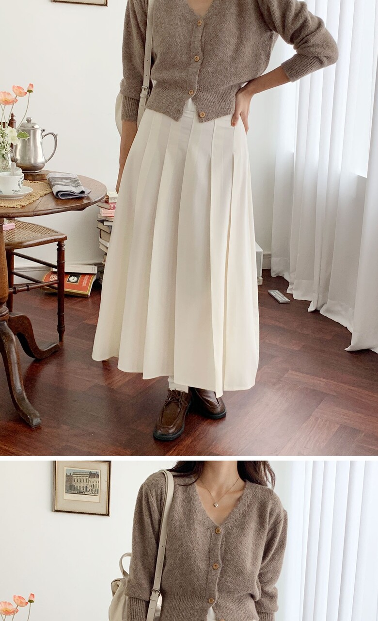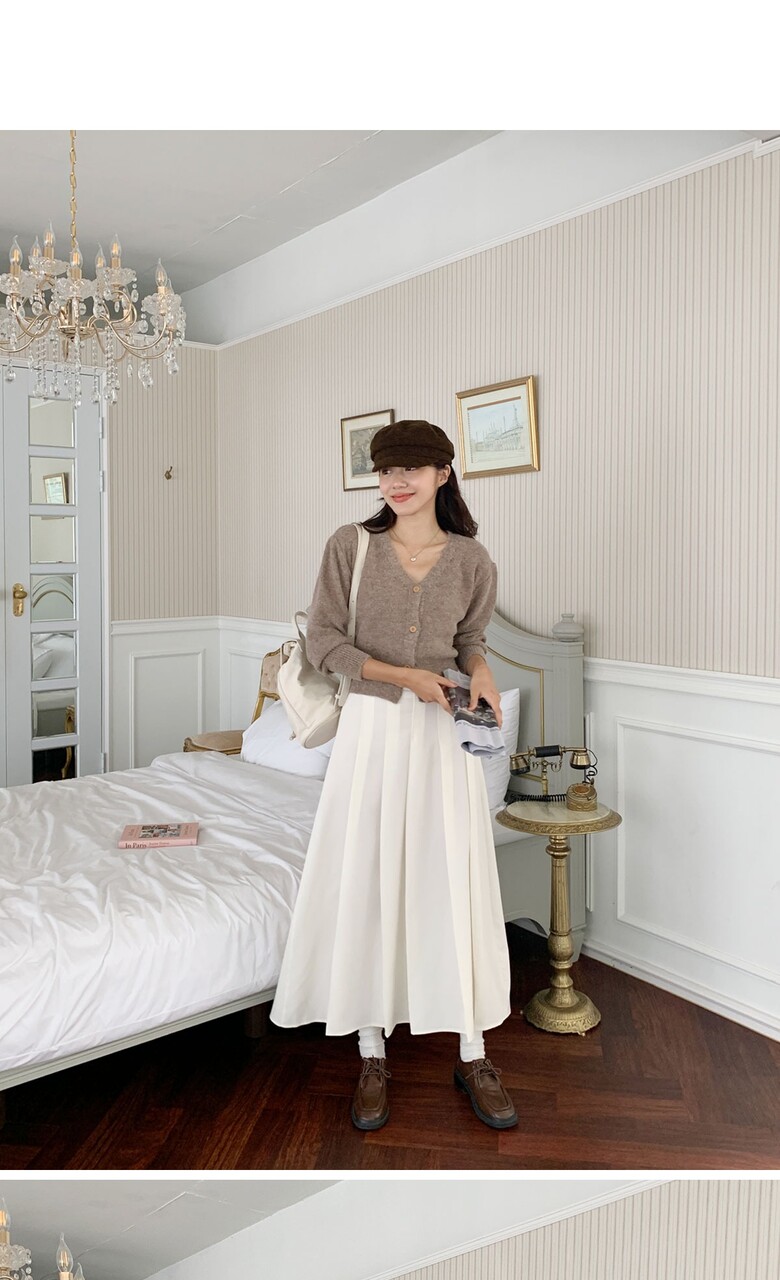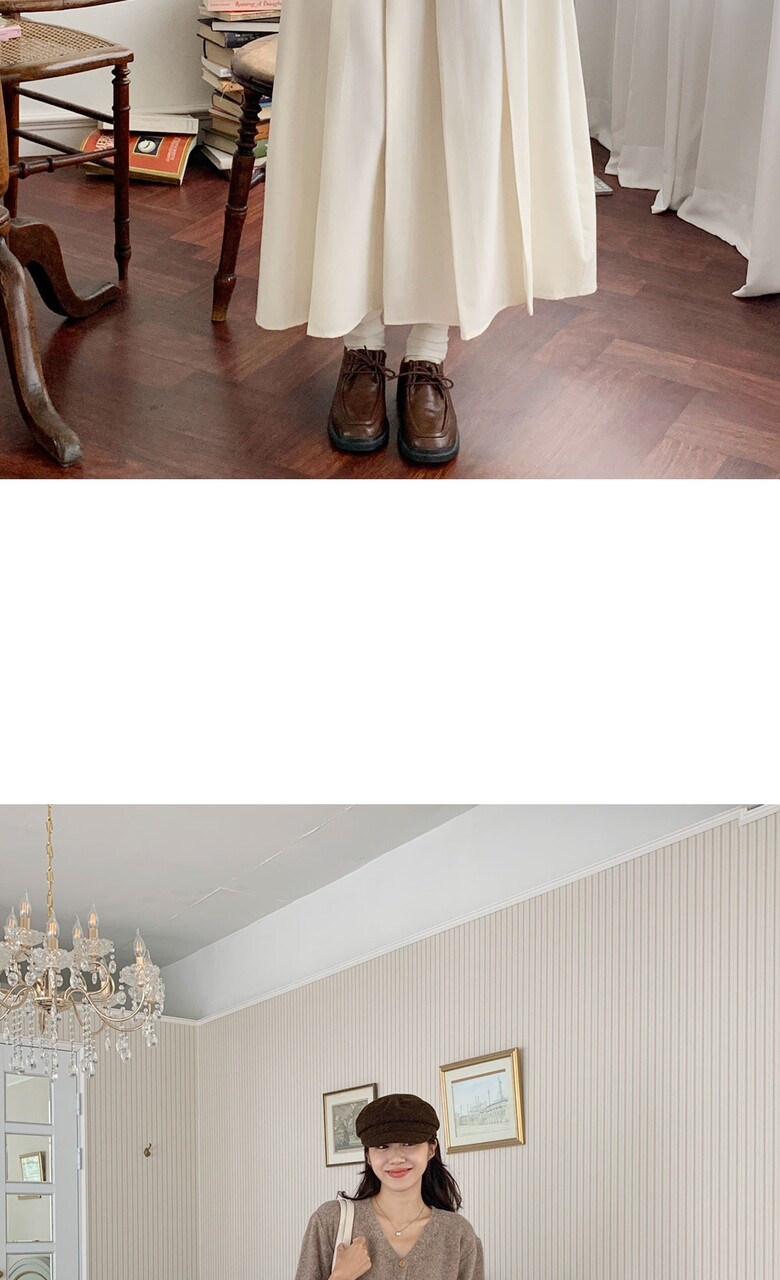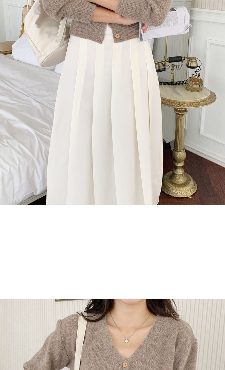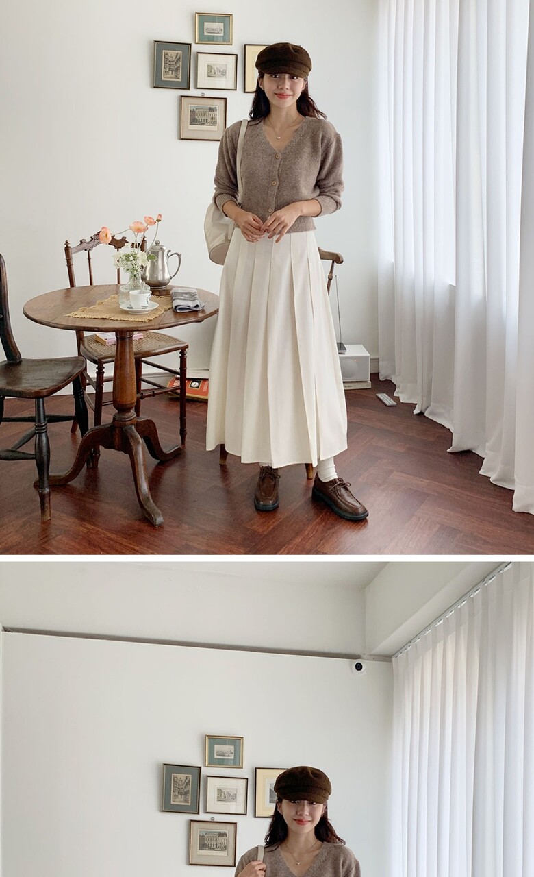 네쥬 여성 가을 편한 뒷밴딩 플리츠 데일리 롱 스커트