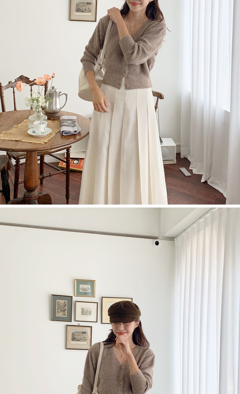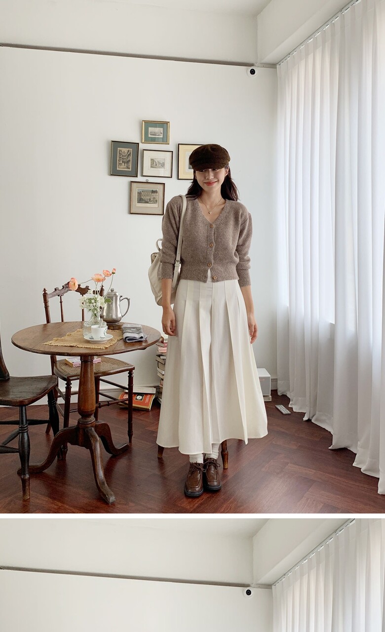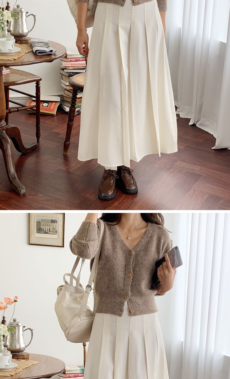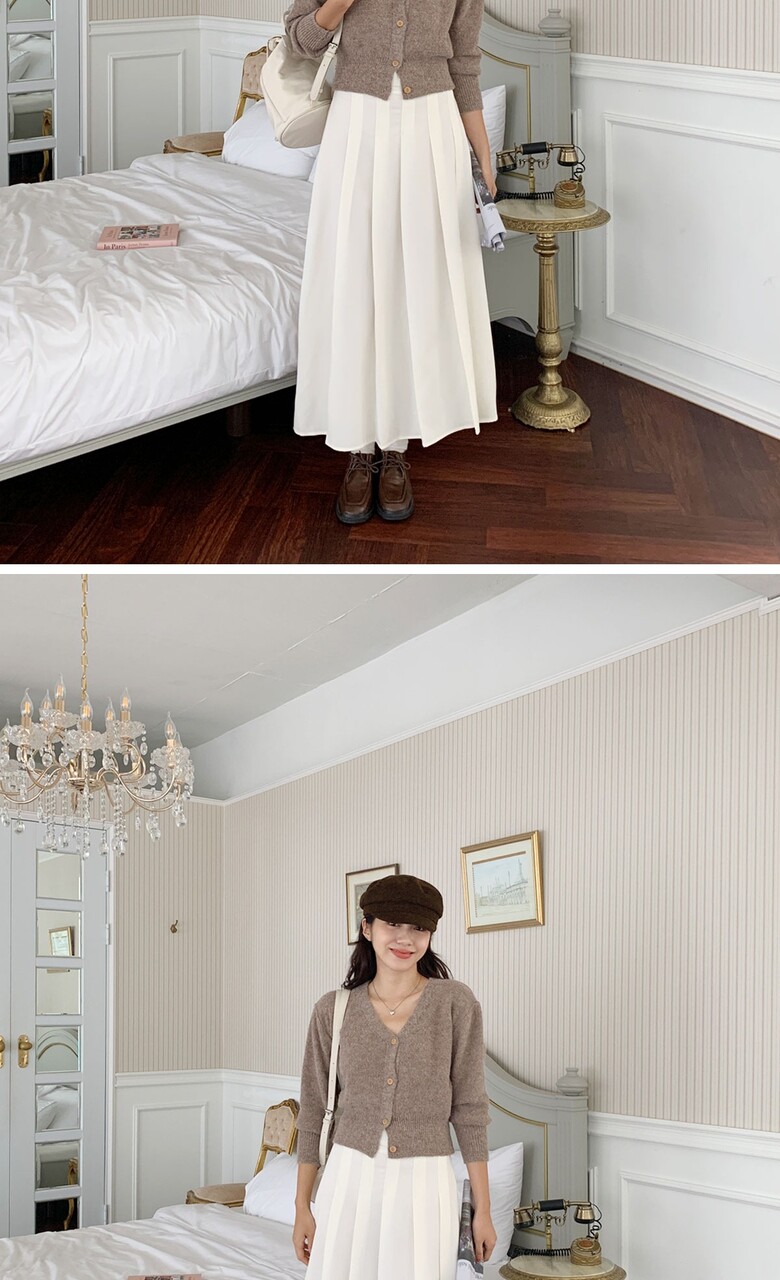 네쥬 여성 가을 편한 뒷밴딩 플리츠 데일리 롱 스커트