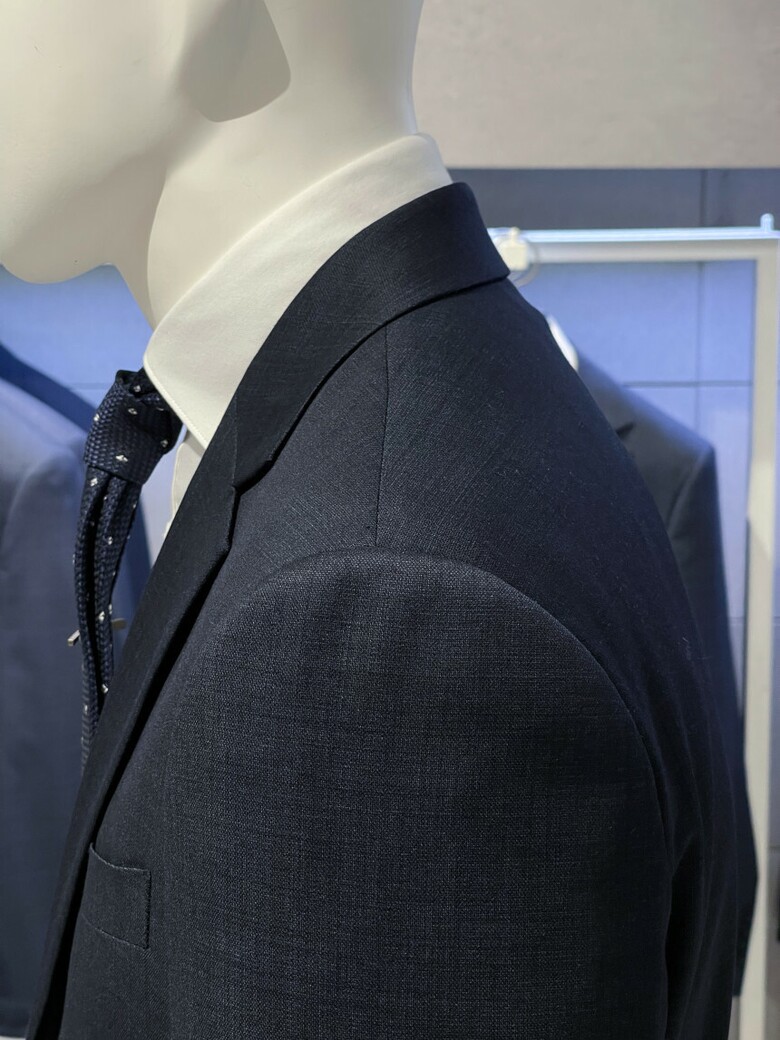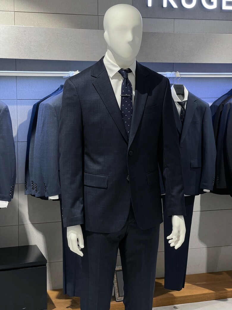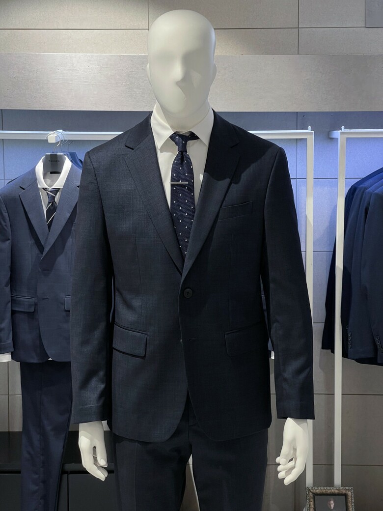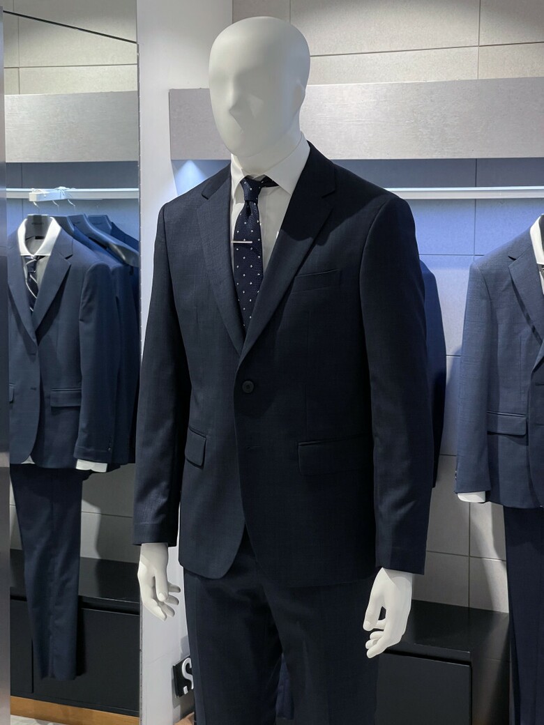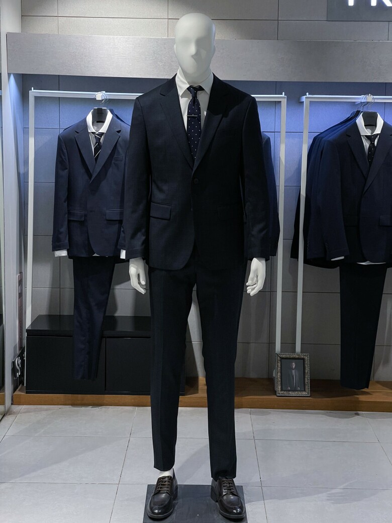 세련된 네이비 색상의 정장입니다.