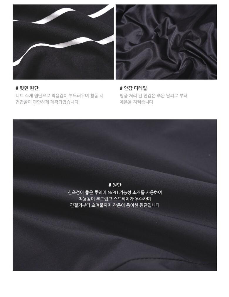 | 1. 제품 소재 (섬유의 조성 또는 혼용률을 백분율로 표시, 기능성인 경우 성적서 또는 허가서) | 겉감:나일론82%,폴리우레탄18%/배색:레이온50%,아크릴25%,면25%/안감:나일론100% |