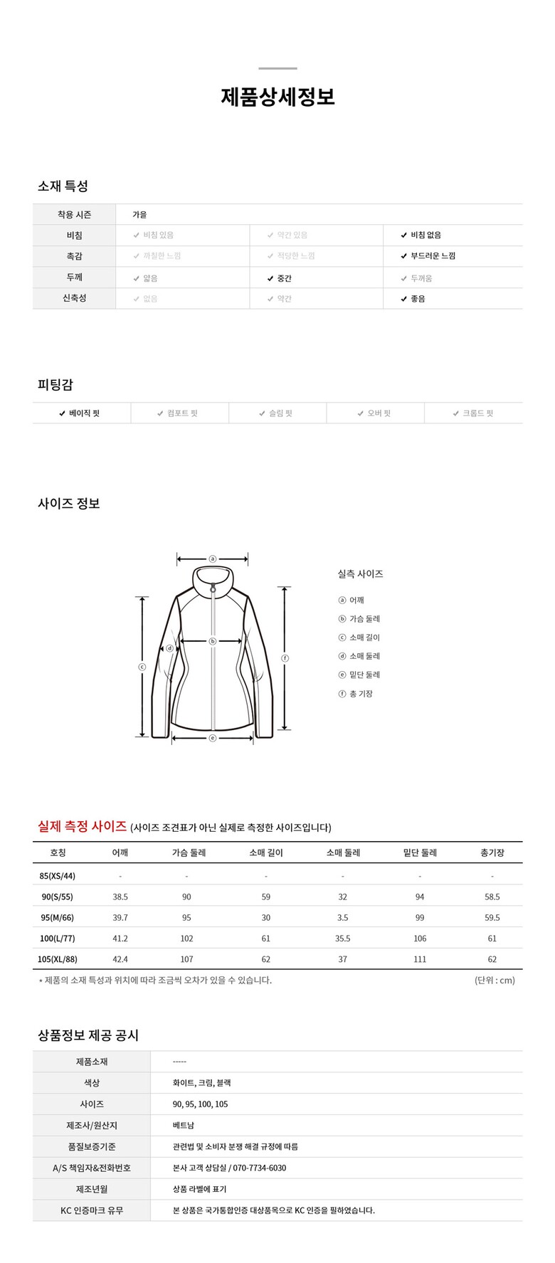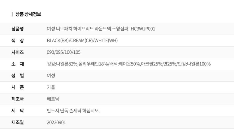 | 2. 색상 | BLACK(BK)/CREAM(CR)/WHITE(WH) |