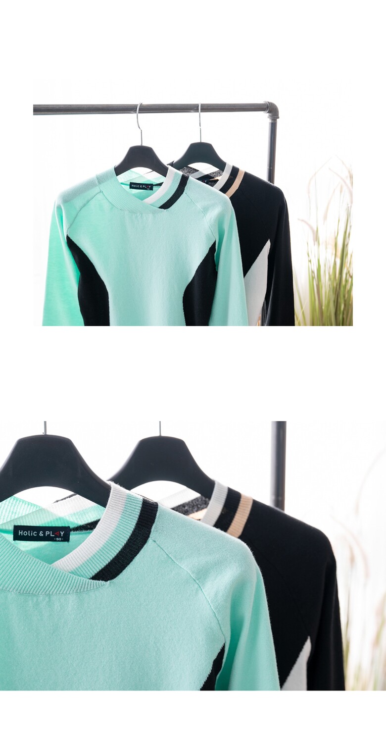 [홀릭앤플레이] 여성 더블 카라 배색 스웨터_HC3WSW004