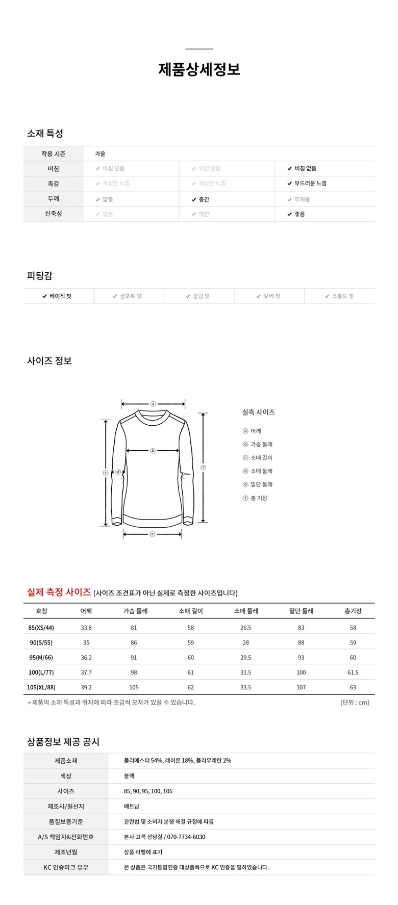 | 1. 제품 소재 (섬유의 조성 또는 혼용률을 백분율로 표시, 기능성인 경우 성적서 또는 허가서) | 겉감:폴리에스터54%,레이온18%,면26%,폴리우레탄2%/배색:폴리에스터90%,폴리우레탄10%/안감:폴리에스터100% |