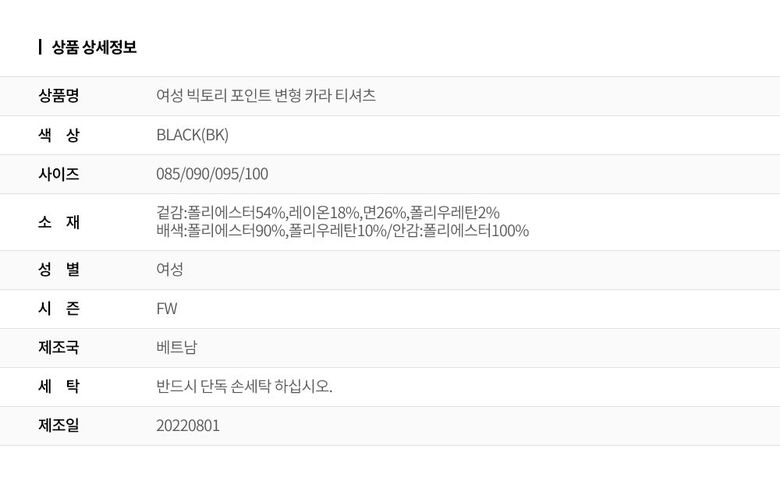[홀릭앤플레이] 여성 빅토리 포인트 변형 카라 티셔츠_HC3WTS003-BK