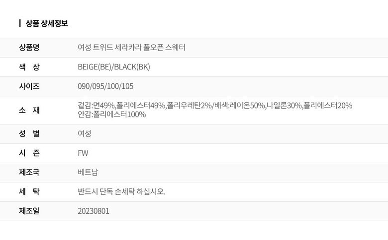 | 2. 색상 | BEIGE(BE)/BLACK(BK) |