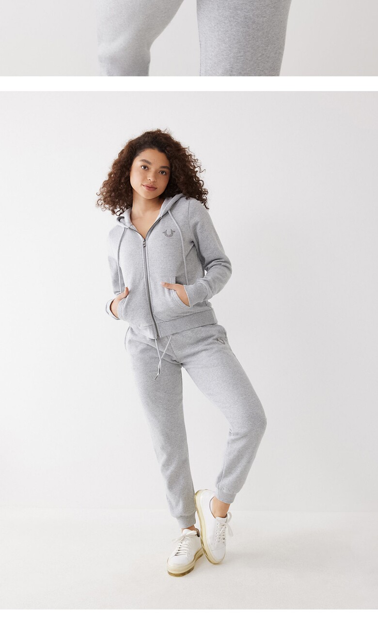 [TRUE RELIGION] 크리스탈 로고 후드 집업 자켓_205416_HEATHER GREY