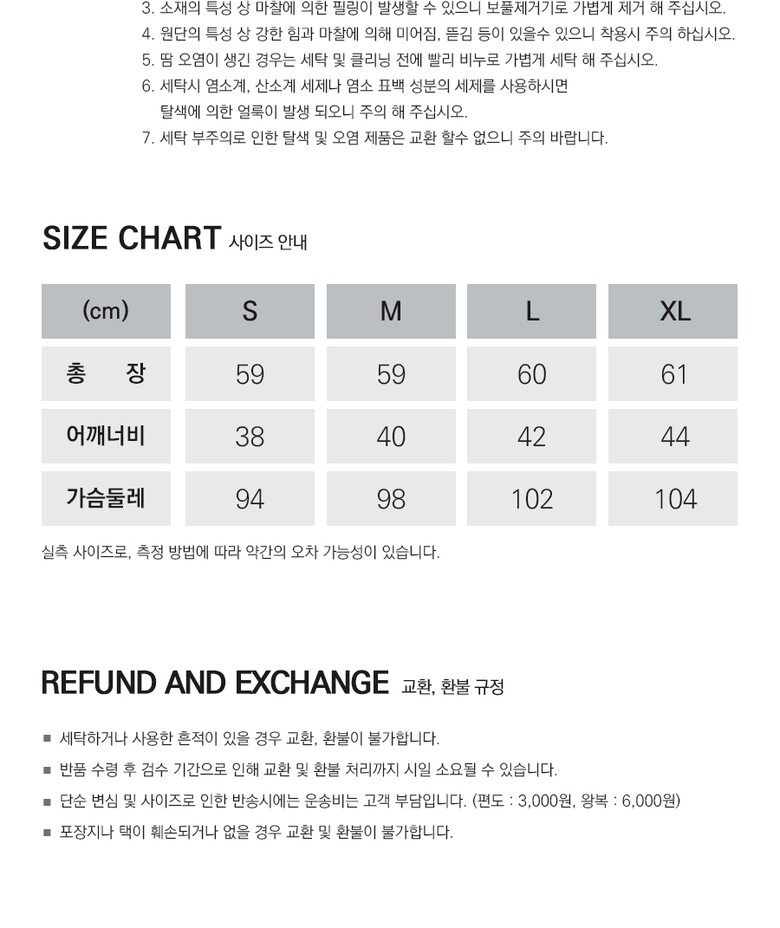 6. 세탁방법 및 취급시 주의사항 | 상세설명참조 |