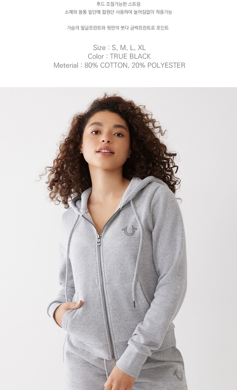 [TRUE RELIGION] 크리스탈 로고 후드 집업 자켓_205416_TRUE BLACK