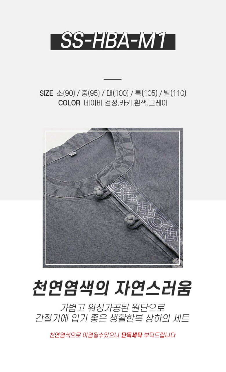 남성 천연 워싱 개량 생활 한복 상하의 세트 SS-HBA-M1