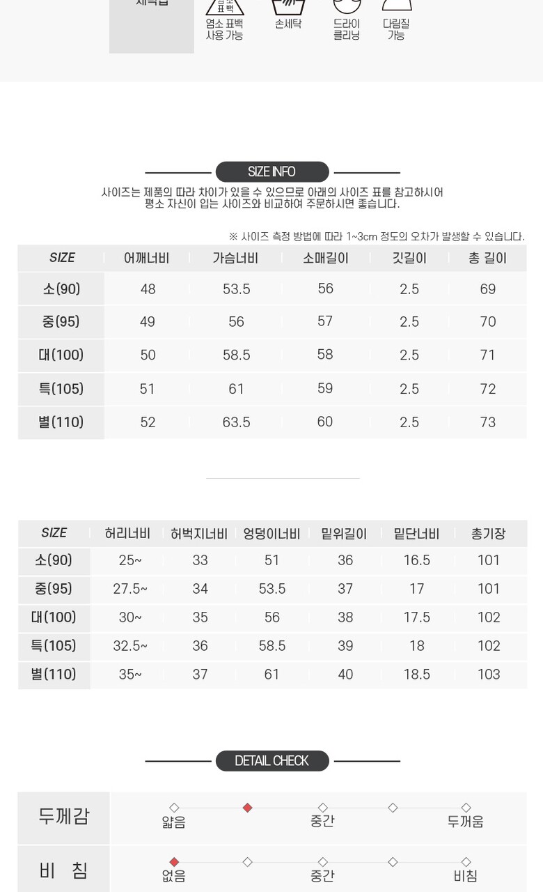 3. 치수 | 소(90),중(95),대(100),특(105),별(110) |