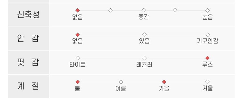2. 색상 | 네이비,검정,카키,흰색,그레이 |