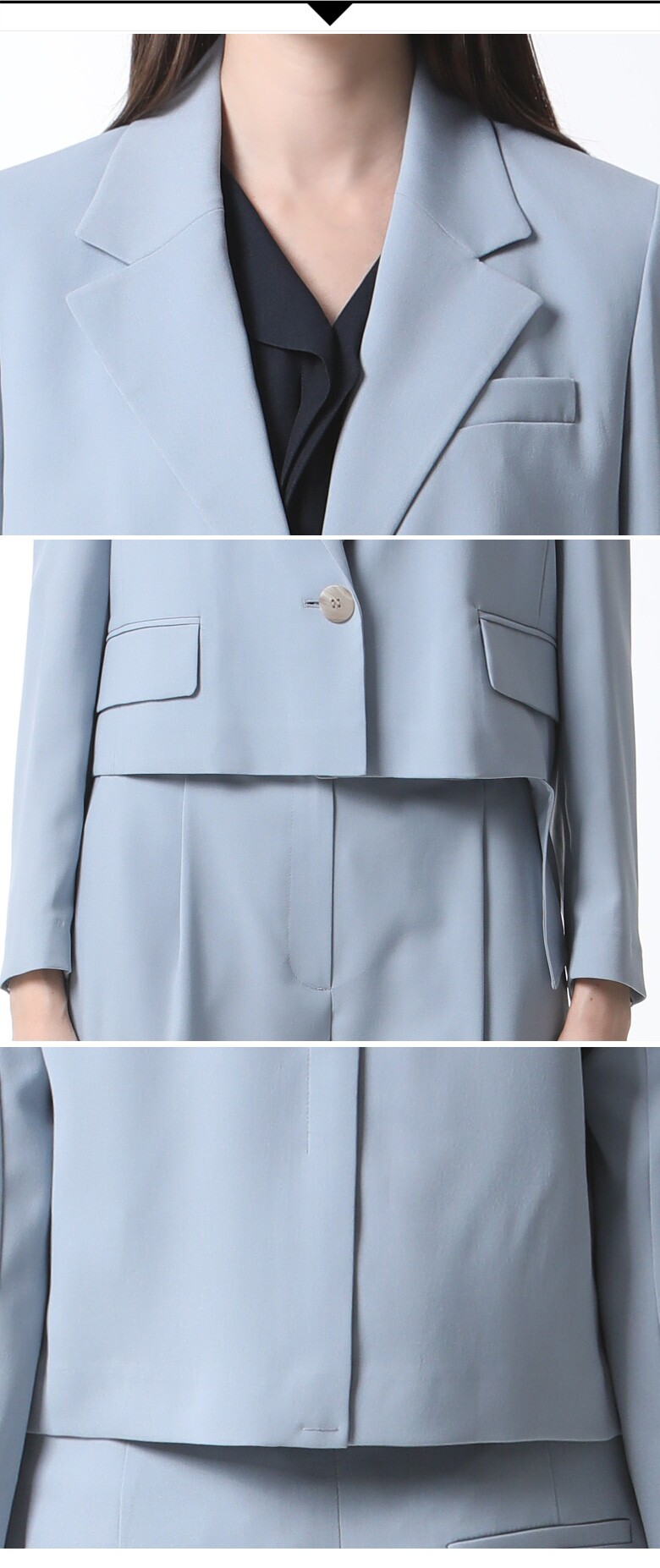 싱글 원버튼 스타일의 숏 자켓입니다. 브랜드 만의 고급 원단을 사용하여 퀄리티가 좋으며, 폴리에스터 혼방 소재로 편안하고 고급스러운 원단감이 특징입니다.. 늦봄~여름철 입기 좋은 자켓으로 SWSSLM21050 팬츠 품번과 셋업으로 입을 수 있습니다