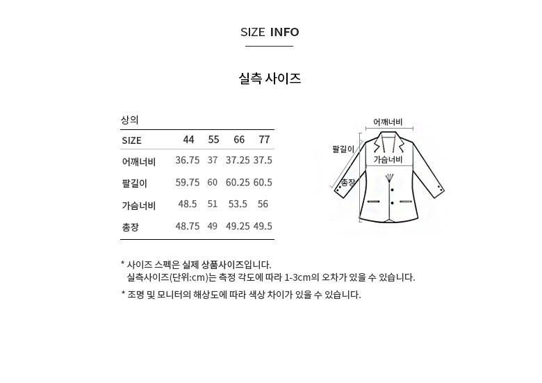 ▶ ITEM : 싱글 원버튼 숏 자켓 ▶ NUMBER :SWSJKM21050 ▶ FABRIC : [겉감] 폴리에스터 98%, 폴리우레탄 2% [안감] 폴리에스터 100% ▶ WASHING : 단독드라이(이염.필링.고온건조 다림질불가) ▶ 원 산 지 : 베트남 ▶ 색 상 : 라이트블루(LL),블랙(BK),그레이베이지(GB),카키(KH)