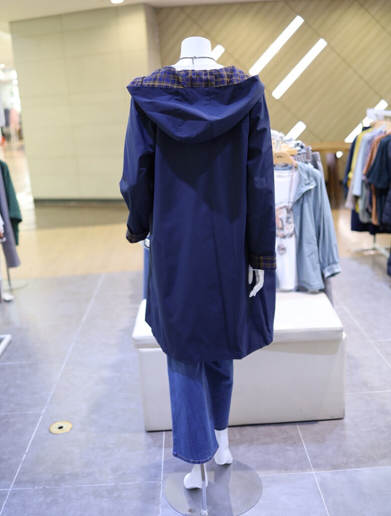 여성 체크 배색 후드 트렌치 코트 DQCPWU210