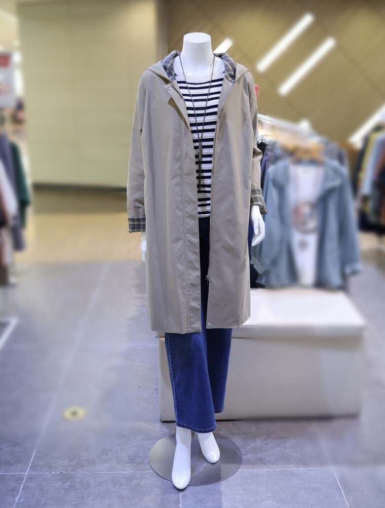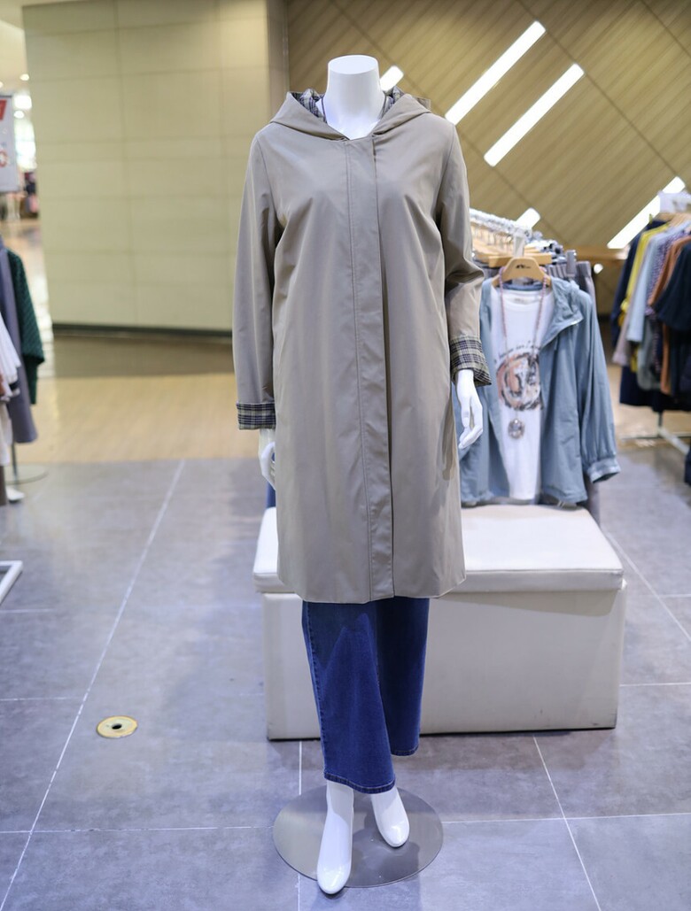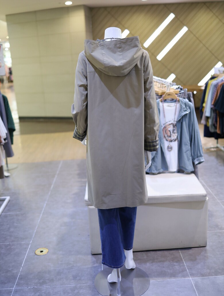 여성 체크 배색 후드 트렌치 코트 DQCPWU210