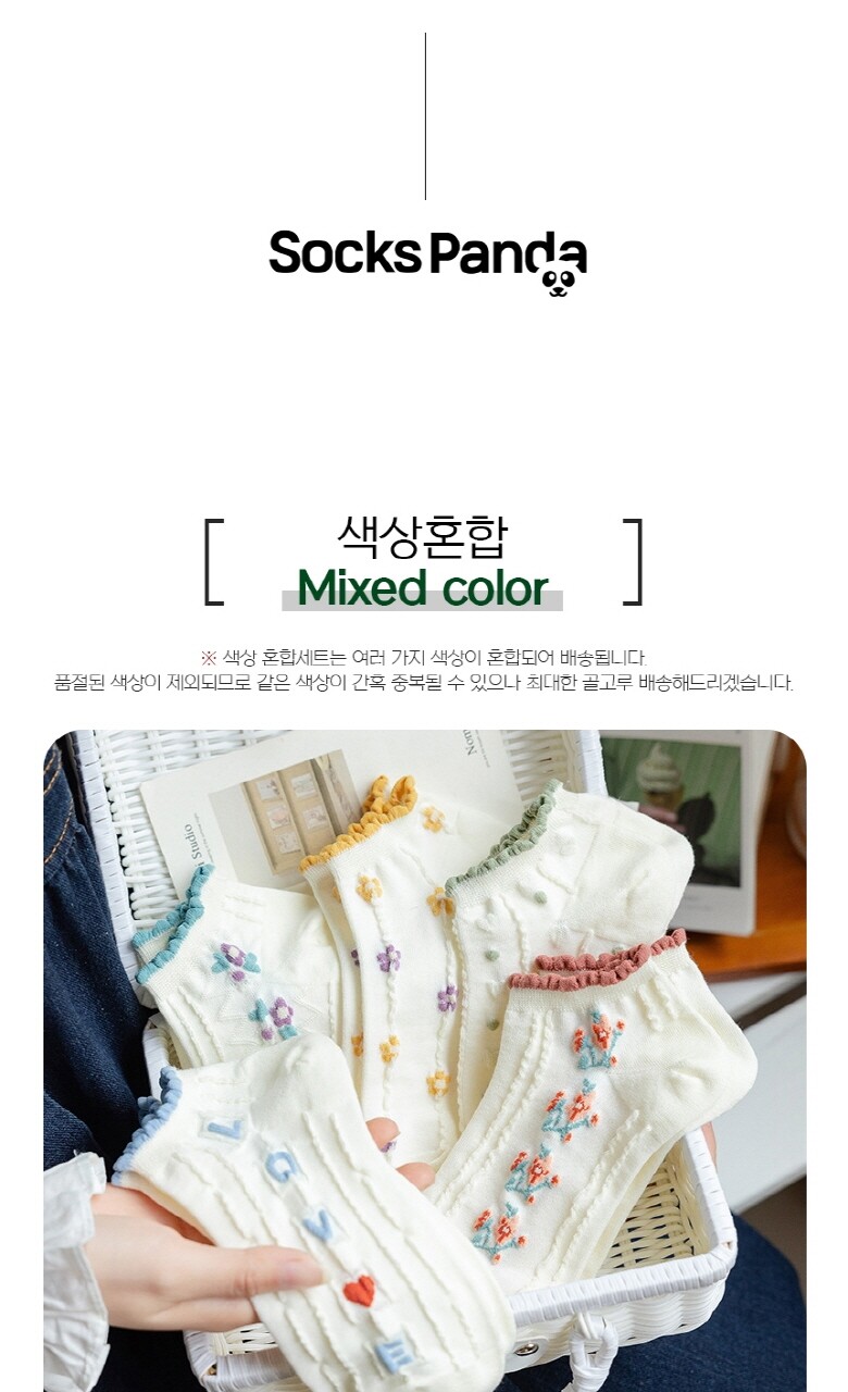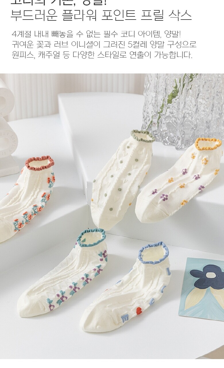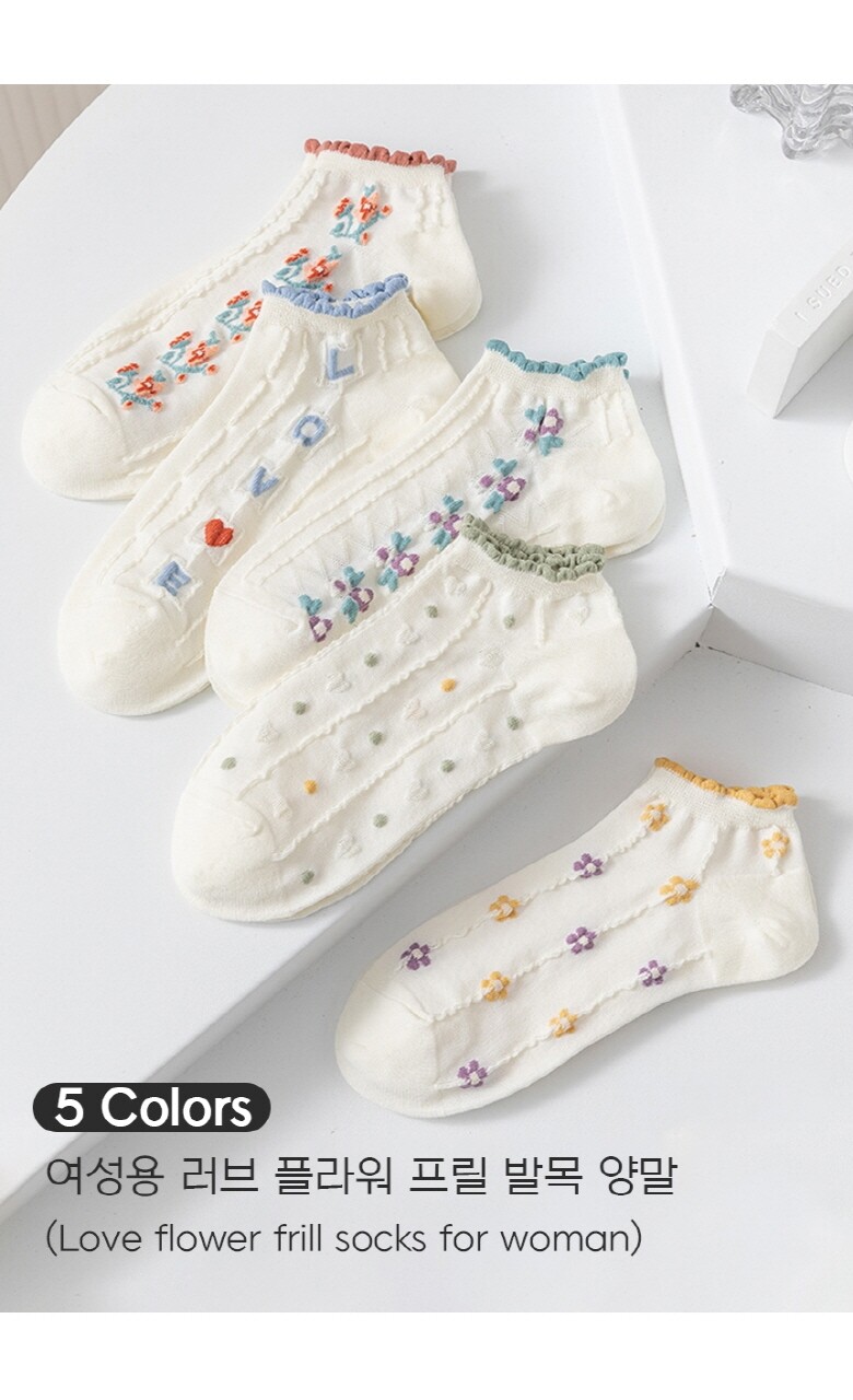 여성 러브 플라워 프릴 발목양말 5켤레/10켤레