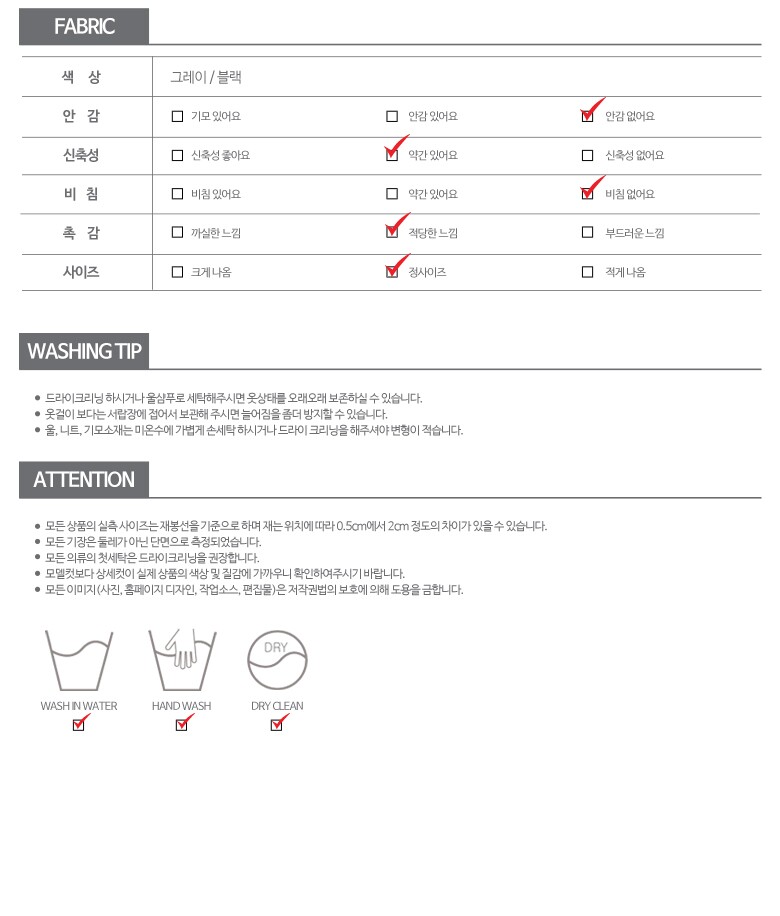 6. 세탁방법 및 취급시 주의사항 | 상세페이지 참조 |