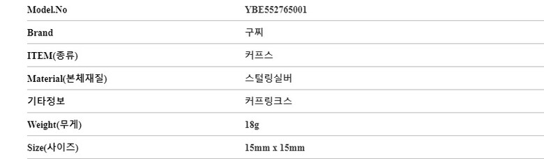 [명품] YBE552765001 남성 G 커프링크스 남성 커프스 그레이