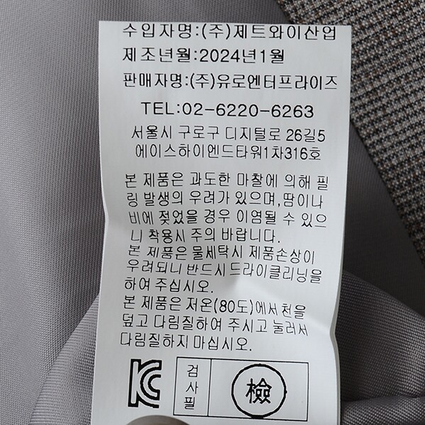 세탁방법 및 취급시 주의사항 : 드라이크리닝
