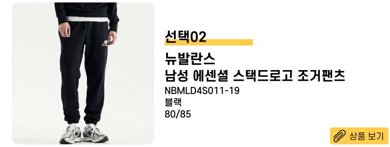 뉴발란스 남성 에센셜 스택드로고 조거팬츠 NBMLD4S011 2종 택1