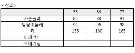 소고(SOGO) 의류 사이즈 기준표