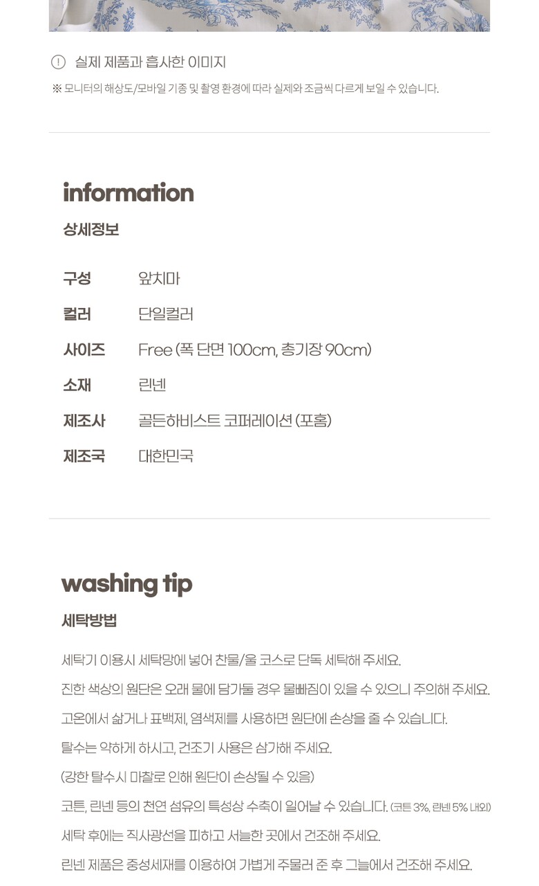 7. 세탁방법 및 취급시 주의사항 상세페이지 참조