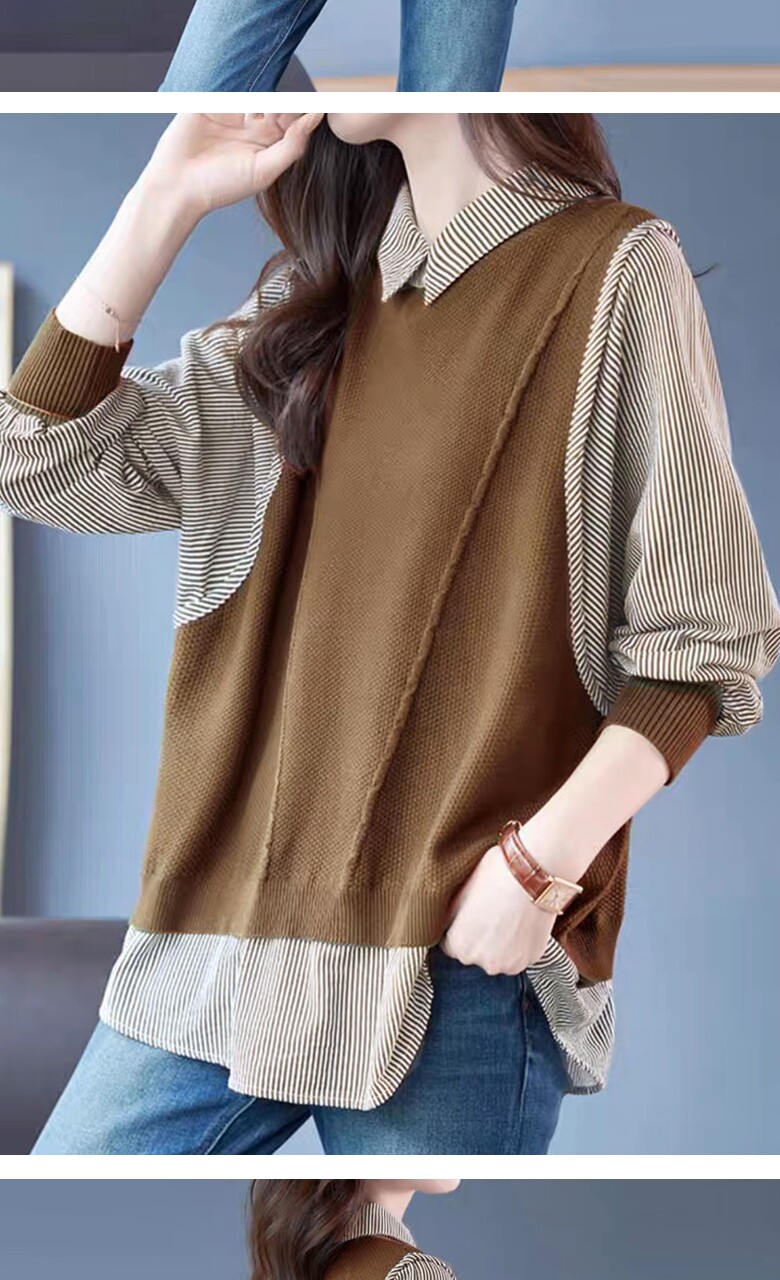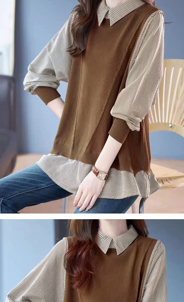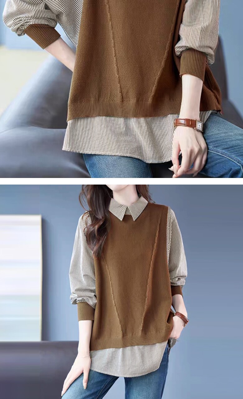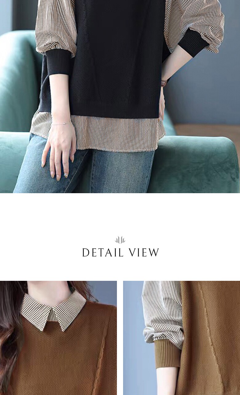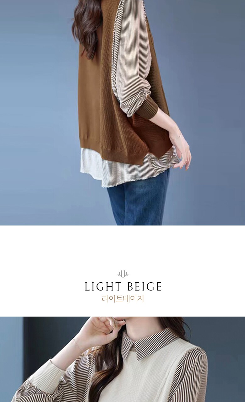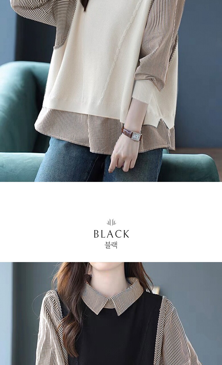 화세 스트라이프니트믹스블라우스_HB4FBL015C