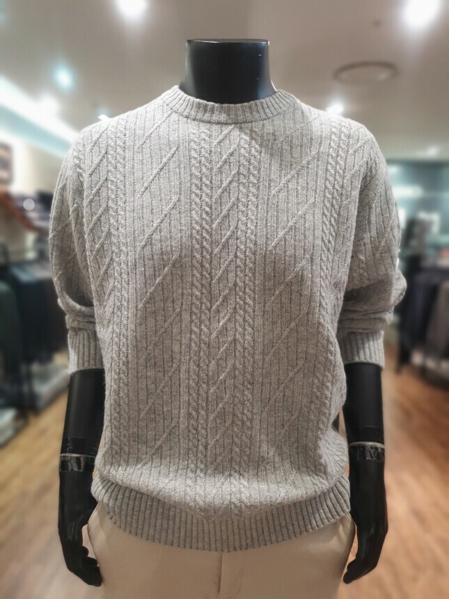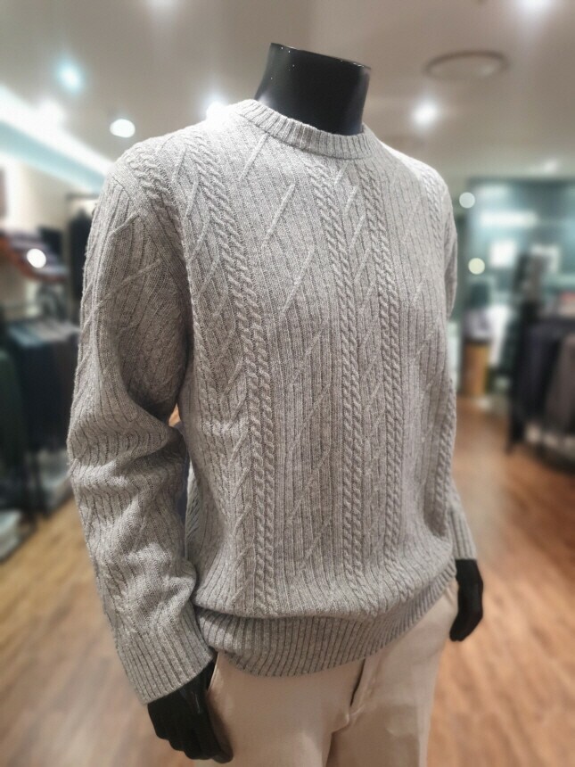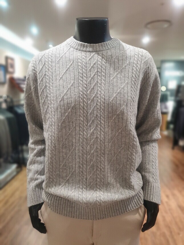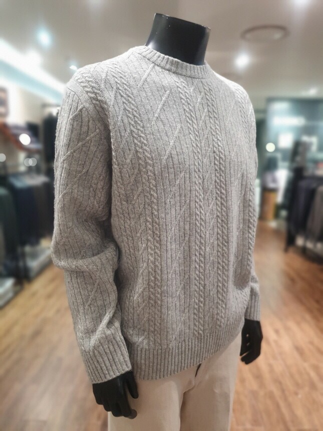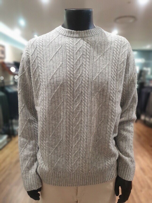 [바쏘옴므] WSY3-W R-23-ALG 24년F/W 모 혼방 꽈배기 라운드 니트